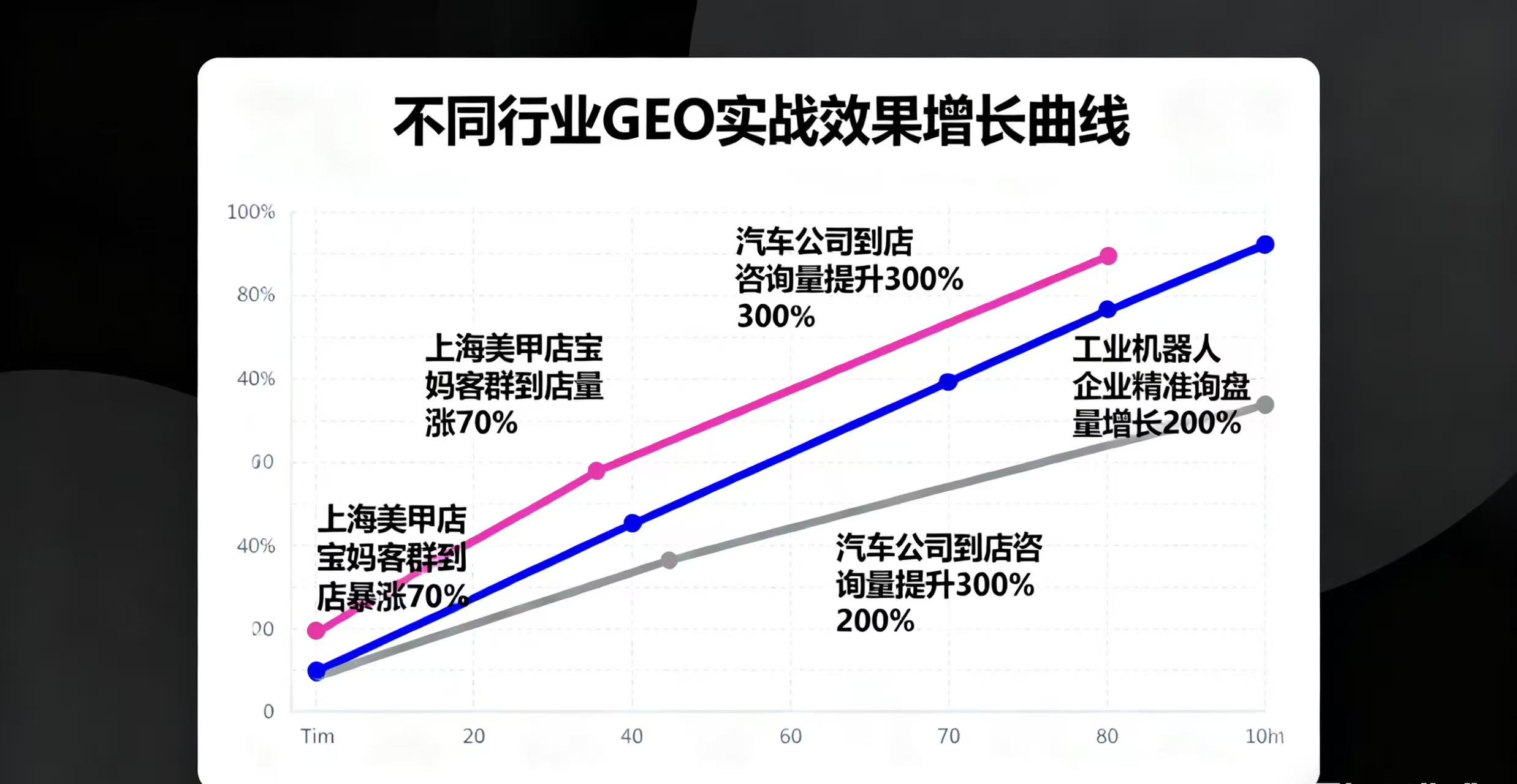 数据不会说谎,GEO的实战效果早已验证其价值。上海某美甲店通过GEO“蜂巢策略”,宝妈客群到店量暴涨70%,套餐核销率达62%;某世界500强汽车公司布局后,全国到店咨询量提升300%,销售转化率直接翻倍;就连工业机器人这类B端赛道,也能通过GEO优化知识图谱,让技术文档AI检索可见度提升90%,精准询盘量季度环比增长200%。对中小企业而言,GEO更是“低成本高回报”的利器:获客成本低至20元/人,仅为传统投流的1/5,且一次部署就能实现全平台生效,效果持续半年以上,无需反复投入人力物力。